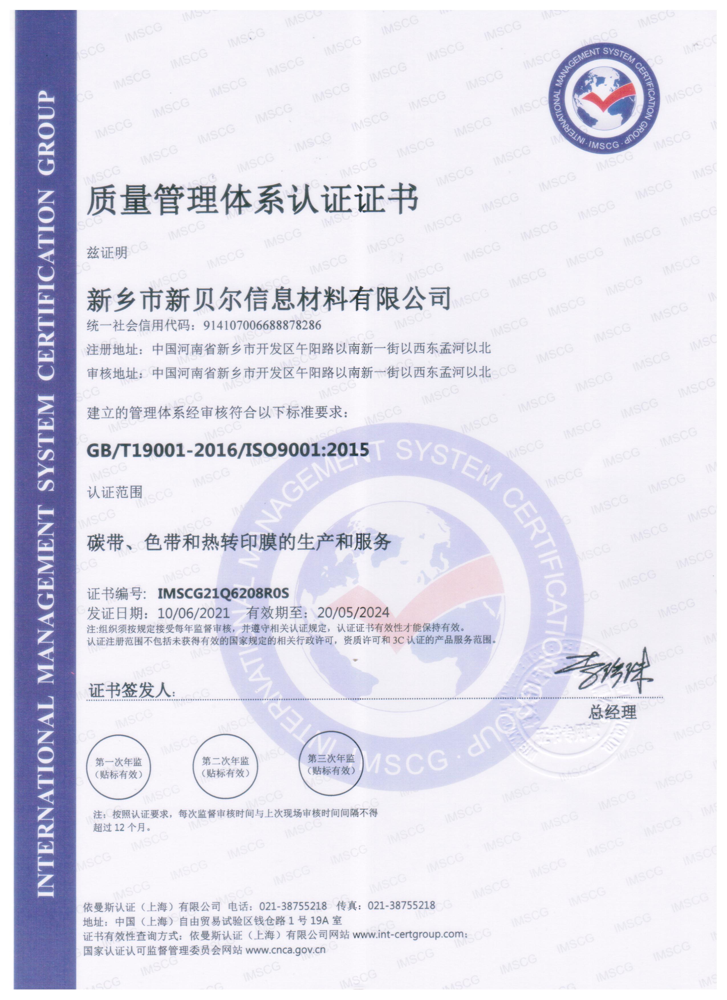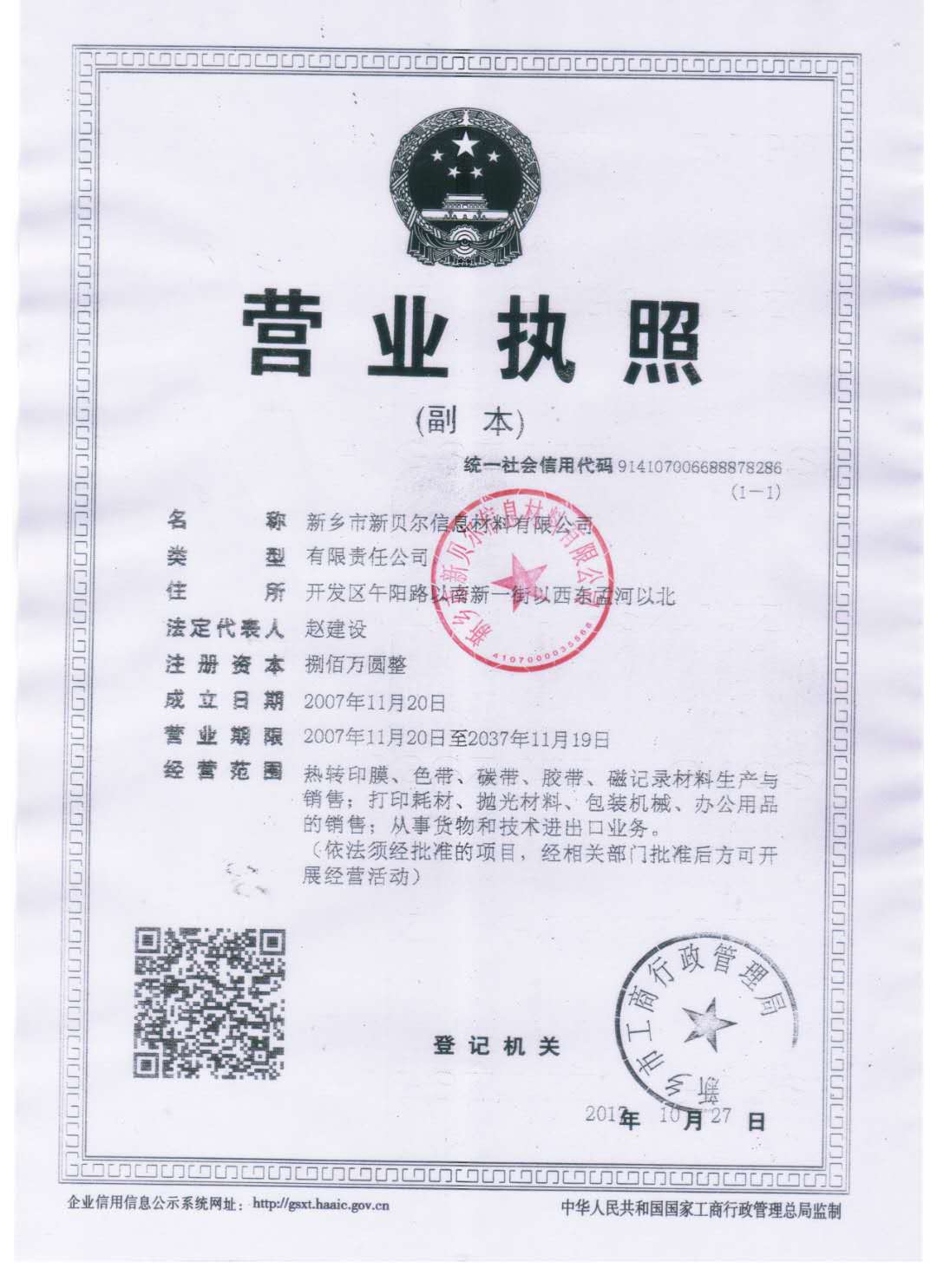 公司生產(chǎn)的高適應(yīng)性打碼色帶被河南省科技廳認(rèn)定為高新技術(shù)產(chǎn)品